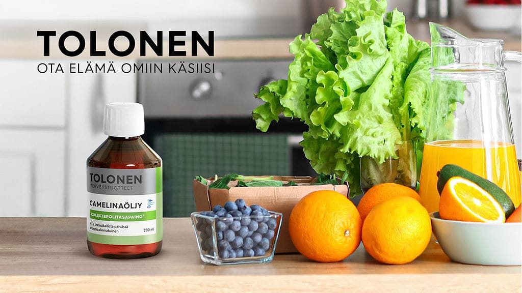 Kotimainen, hellävaraisesti kylmäpuristettu Tolonen Camelinaöljy auttaa tasapainottamaan kolesteroliarvoja nimenomaan luontaisesti erityisen korkean alfalinoleenihappopitoisuutensa ansiosta. Nykyisin tiedetään, että edullinen vaikutus kolesteroliin saavutetaan nauttimalla päivittäin 2 g alfalinoleenihappoa. Tämän annoksen saa helposti nauttimalla vain n. 6 ml eli reilun teelusikallisen Tolonen Camelinaöljyä päivässä. Camelinaöljyn kolesteroliin kohdistuvan vaikutuksen on havaittu olevan selvästi suurempi kuin esimerkiksi muilla tutuilla kasviöljyillä, rypsi- ja oliiviöljyllä. Tämä johtuu juuri camelinan korkeammasta alfalinoleenihappopitoisuudesta.