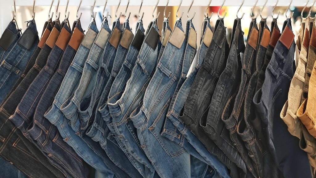 18-vuotias Chloe on asetellut kuvaan seitsemät erikokoisilta näyttävät farkut, joita kuitenkin yhdistää yllättäen eräs asia: sama koko.