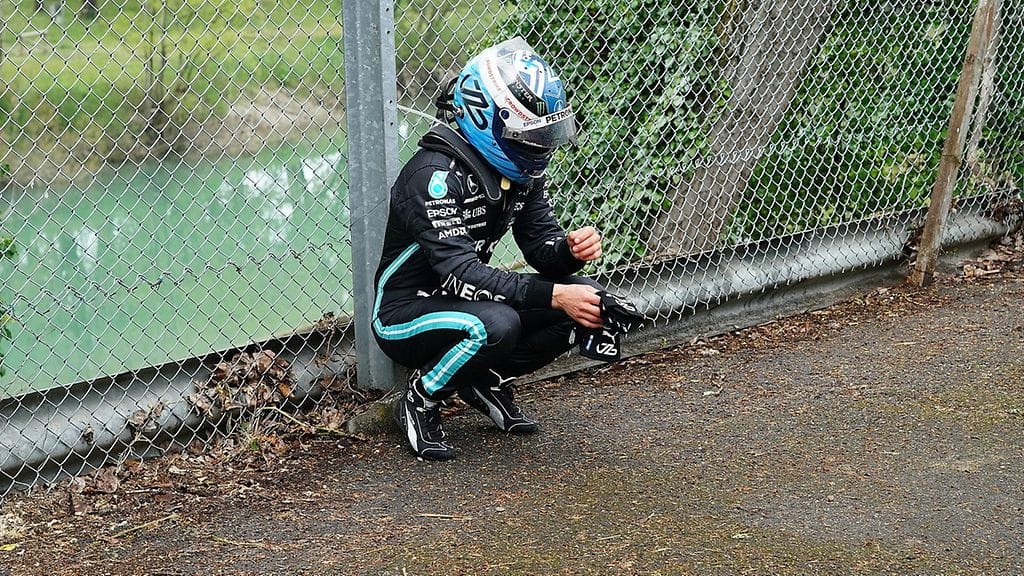 Sunnuntain kisassa Bottas jäi pahasti jumiin Aston Martinin Lance Strollin taakse. Varikkopysähdysten jälkeen Williamsin George Russell haastoi Bottaksen tavalla, joka johti lopulta molempien kisan päättäneeseen kolariin.