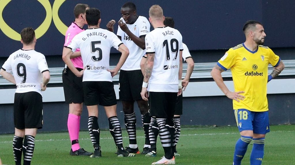 Cadizin ja Valencian välinen ottelu keskeytyi 29. minuutilla, kun vierasjoukkue Valencian pelaajat astelivat pukusuojaan. Mielenilmaisun taustalla oli ranskalaispelaaja Mouctar Diakhabyn syytökset Cadizin puolustajaa Juan Calaa kohtaan.