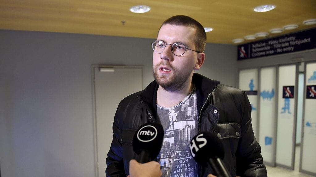 Perussuomalaisten erottama 3. varapuheenjohtaja Sebastian Tynkkynen palasi illalla Islannista Suomeen.