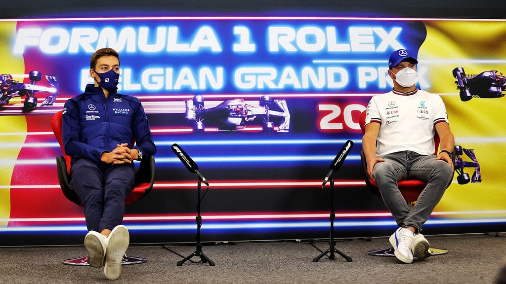 Torstaina Belgiassa Bottas ja Russell istutettiin yhtä aikaa F1:n viralliseen lehdistötilaisuuteen.