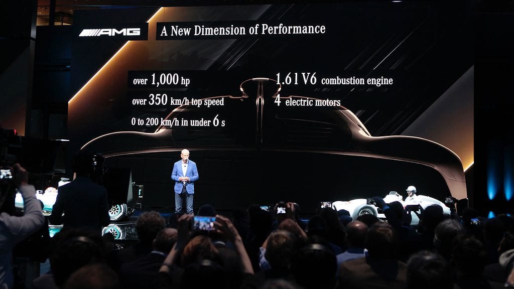 Kyseessä on jo pitkään nimensä osalta tiedossa ollut Mercedes-AMG Project One. Uusi superauto perustuu F1-auton tekniikkaan, joka on paketoitu katukäyttöisiin kuoriin. Polttomoottorina toimii 1,6-litrainen turboahdettu V6, jonka parina toimii kolme sähkömoottoria sekä yksi sähköinen ahdin. Yhteistehoa autosta irtoaa valmistajan ilmoittaman mukaan yli 1 000 hevosvoimaa, ja suoritusarvoiksi ilmoitetiin 0-200 km/h alle 6 sekunnissa ja huippunopeutta yli 350 km/h. Jarrutusenergiasta saadaan kerättyä talteen yli 80 prosenttia etuakselilla sijaitsevien kahden sähkömoottorin avulla ja pelkällä sähköllä Project Onella pystyy taittamaan matkaa vähintään 20 kilometriä.