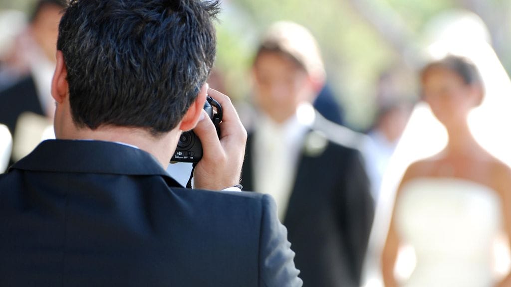 Pariskunta odotteli hääasuissaan apujoukkoja vartin verran hääkuvaajan napatessa samalla kuvia.