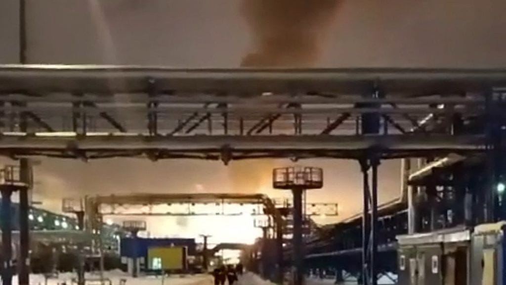 Venäläismedia Fontanka kertoo kuitenkin kahdesta havaitusta droonista alueella ennen palohälytystä.