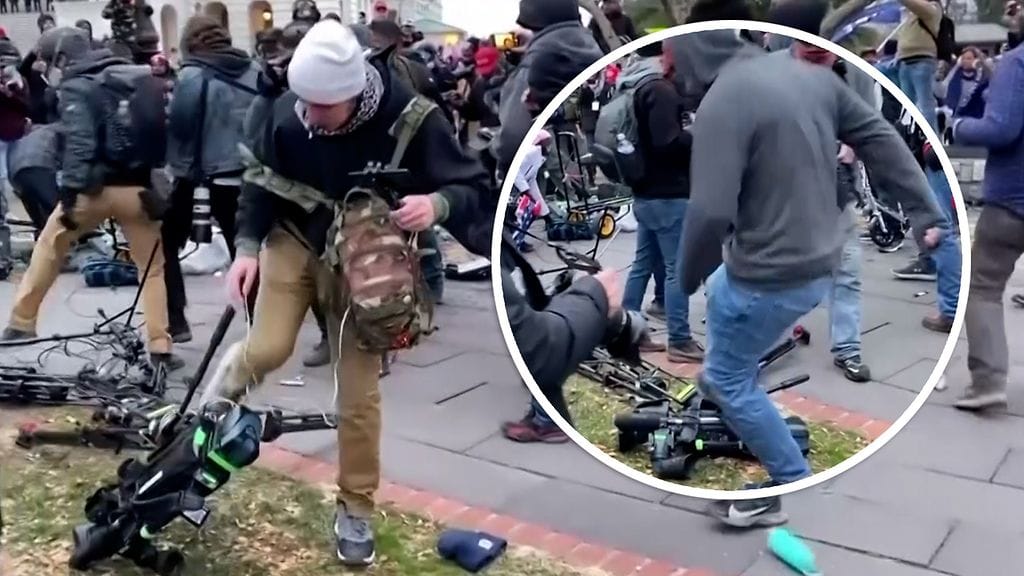 Välikohtauksesta kuvatulla videolla näkyy, kuinka mellakoijat tuhoavat kongressitalon edustalla muun muassa toimittajien TV-kameroita.