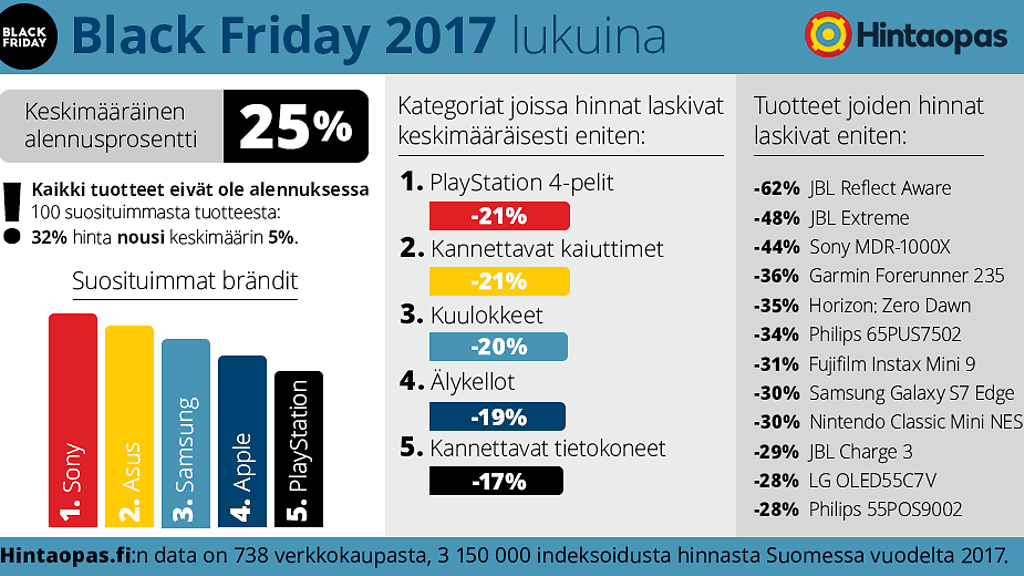 Hintaopas vertailee hintoja puolueettomasti ja hakee vertailuun kaikkien saatavilla olevien verkkokauppojen ilmoittamat hintatiedot. Näin yli 700 verkkokaupan Black Friday -alennukset näkyvät kuluttajalle samalla sivulla.