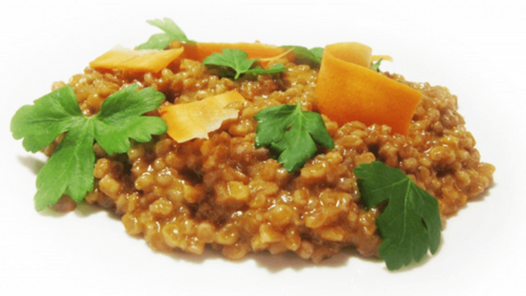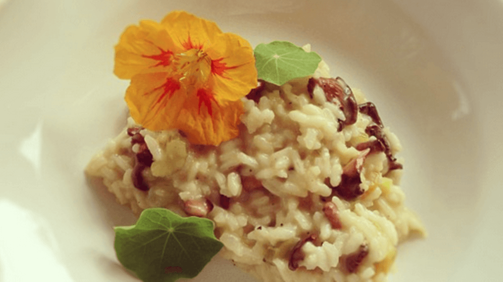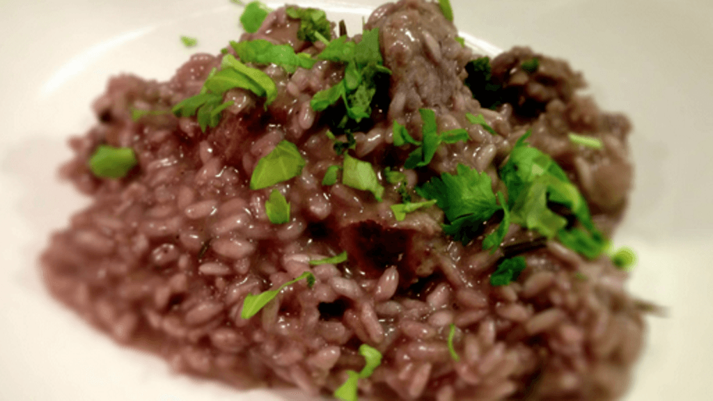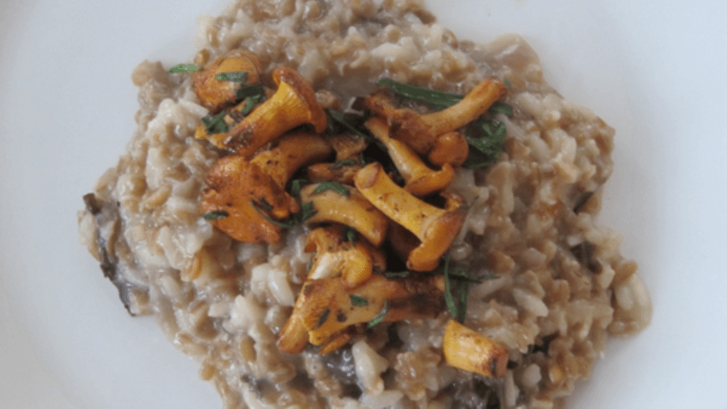 Sienirisotto kuivatuista ja grillatuista sienistä