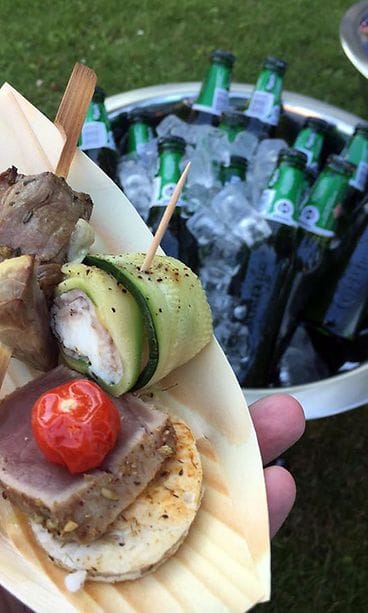 Lounas nautittiin Glyptoteketin takapihalla puutarhakutsujen tyylillä. Bisset kylmässä ja pöydät täynnä pieniä herkkuja. Reissun toinen ja viimeiseksi jäänyt ”perus-Carlsberg”.