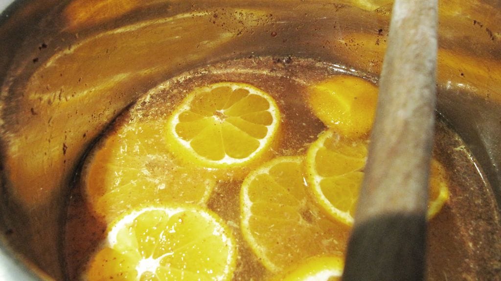 Kaada kattilaan 7,5 dl vettä ja sekoita siihen klementiinisiivut ja mausteet (paitsi sokeri). Kiehauta ja hauduttele miedolla lämmöllä 5 min. Ota kattila liedeltä ja lisää rusinat ja mantelit. Anna makujen tasaantua 15 min. Siivilöi liemi toiseen kattilaan. Kaada sekaan punaviini, portviini ja sokeri. Lämmitä juoma kuumaksi, mutta älä anna kiehahtaa. Lisää akvaviitti. Säädä makeus mieleiseksi sokerilla. Nauti halutessasi mantelilastujen ja rusinoiden kera.