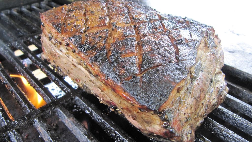 Tee kyljen rasvakerrokseen ristiviiltoja. Valele liha oliiviöljyllä ja ripottele päälle fenkolisiemenmurskaa, valkosipulinkynsisiivuja ja chilirouhetta maun mukaan. Anna marinoitua viileässä yön yli tai vähintään pari tuntia. Ota liha tuntia ennen grillausta huoneenlämpöön. Viritä grilli kuntoon ja grillaa lihaa aluksi rasvakerros alaspäin. Kääntele lihaa välillä ja varo, mikäli tihkuva rasva syttyy tuleen. Grillaa lihaa vartin verran, kunnes saat kauniit raidat ympäri kimpaletta.