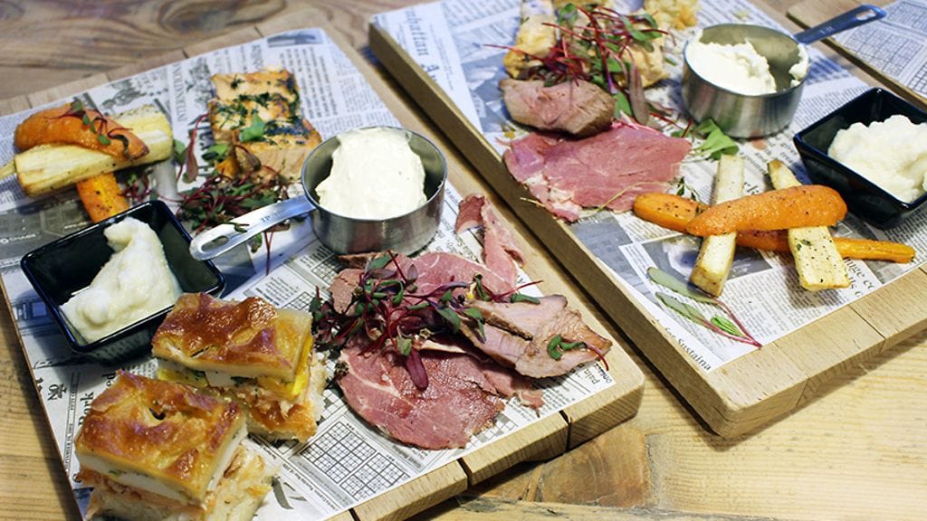 Hotlan Ro-Ro Barin cocktailit on suunniteltu Son of a Punchin toimesta. Meille tarjotaan alkuun erinomaiset inkivääriset drinksut. Hiukopalaksi oikein mainio kattaus alkupaloja leikkeleistä, juustoista sun muusta. Iso kumarrus peltilohipiirakasta, joka oli juuri niin hyvä kuin voisit kuvitella.