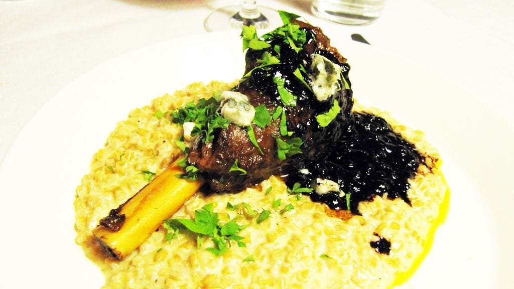 Tässä juhlava ruoka, jossa makua on vaikka muille jakaa. Resepti on johdettu Sara La Fountainin Passion for Food -kirjasta. Saran kokkaustyyli ei yleensä puhuttele minua, mutta tässä nainen onnistuu mainiosti. Kerman lisääminen risottoon teki hiukan pahaa, mutta menköön tämän kerran. Toimisi ilmankin.