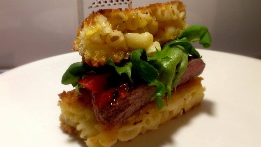 Vaikka pelkän burgerin taiturointi on oma kunnioitettava taiteenlajinsa, olen kokeillut rajojani pitemmälle. Ramenburger sytytti kesällä kiinnostukseni täysillä. Sen jälkeen törmäsin mac’n’cheese burgeriin. Jenkkien kruunaamattoman kansallisruoan, paikallisen makaronilaatikon pohjalle tehtyyn hampurilaiseen. Ramenburger oli varsin helppo, mutta aavistelin makaroniburgerin olevan haastavampi. Olin oikeassa. Mutta maku oli hyvä. Periaatteessa kuin makaronilaatikko, mutta ei sinne päinkään.
