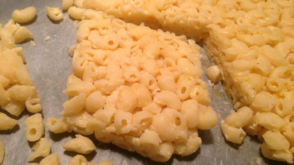Kokkailusta tuli odotettua isompi asia, kun en lukaissut alkuperäistä ohjetta tarpeeksi tarkkaan aluksi. Valmista mac’n’cheesea kuului jäähdyttää painon alla viisi tuntia. Yritin kikkailla tiiviiksi hyytymistä reilun tunnin aikana, mutta lopputulos oli karmea. Frittipannu täyttyi irtomakaroneista ja korppujauhoista. Siispä jätin makaroniseoksen painon alle yön yli ja kokeilin seuraavana päivänä. Sitten onnistui. Kantapään kautta opittu neuvo on tehdä mac’n’cheesestä mahdollisimman liisteriä. Tein siitä niin pirun hyvää, etten kiinnittänyt innostukseni keskellä tarpeeksi huomiota rakenteeseen. Pirusti juustoa mukaan ja jos vaikuttaa liian kostealta, niin vielä vähän lisää. Olennaista on myös käyttää pieniä makaroneja tai muuta pientä pastaa. Mitä pienempi, sitä tiiviimpi, mutta ei kunnon purtavaksi asti tarvitse tiivistää. Tärkeää on myös varata ohuita lastoja ja vakaita käsiä. Oma makaroniseos oli varsin hauras ja paistoon saaminen oli tarkkaa puuhaa. Kannattaa tehdä sitä kunnon määrä, koska paikoitellen epäonnistumisia voi tapahtua. Ja jos ei tapahdu, niin jääkaappiin tai pakastimeen jää hyvä satsi tähdeherkkuruokaa.