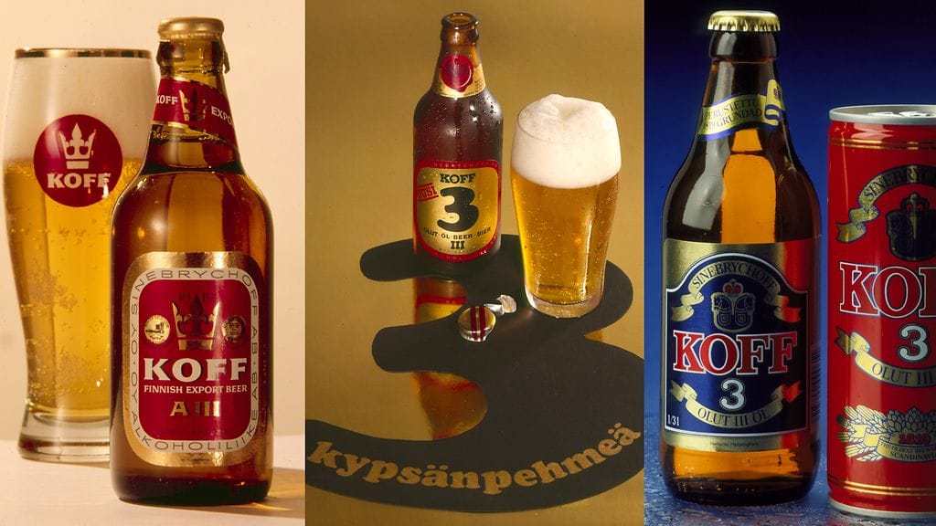 Vuoteen 2016 mennessä Koffin kolmosen pullo ja etiketti on kumpikin käynyt läpi melkoisen muodonmuutoksen, mutta yksi asia on ja pysyy: Koffin kirkkaanpunainen väri. Katso, kuinka paljon tuttu olutpullo etiketteineen on muuttunut vuosien saatossa!