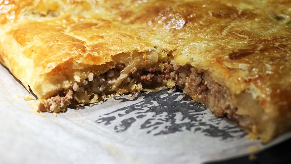 Alusta asti itselleni oli selvää kokata ensimmäisenä todella old school -lihapiirakka. Naudan jauhelihaa, riisiä ja kananmunaa voitaikinalla kuorrutettuna. Ei voi kuin toimia, mutta edelliset kokemukset osuvat niinkin pitkälle kuin 80-luvun lauantai-iltoihin Hymyhuulten tunnarin soidessa, kylpytakki päällä saunan jälkeen, ilta-palaa nauttien. Cokista litran lasipullosta, koska oli karkkipäivä ja lauantai. 70-luvun lapselle ruoka ei paljon retrommaksi mene. Nykyisellään lohturuokaa parhaimmillaan ja hieno fiilistelypala illanistujaisiin.