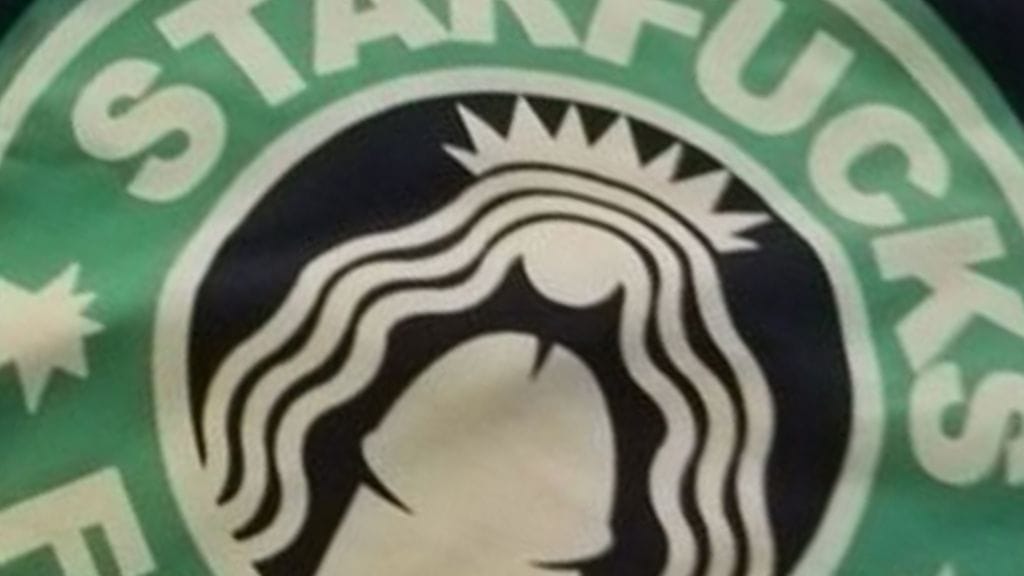 Totta tosiaan, tämän tuliaispaidan sanoma ei ihan viittaa kansainväliseen kahvilaketjuun, jonka logo näyttää oikeasti tältä: