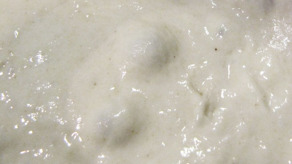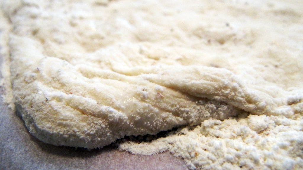 Lahjomattomat kuplat Pizzataikinan yksi laadunmittareista on kuplat. Ohuita, isoja, pinnalta kärähtäneitä kuplia ei saa aikaiseksi kuin ajan kanssa. Slicen mukaan ideaali aika on 3-5 päivää. Olen kokeillut kerran aiemmin kolmen päivän kohotussessiota ja todennut metodin toimivaksi. Taikinan koostumus on hyvin löysä ja pintaa täynnä kuplia. Tässä vaiheessa ei kannata mokata. Itse tyrin, vaikka kuinka yritin pitää taikinaa hellävaroen. Koostumus oli niin löysää, että jouduin ottamaan venyttelyn pariin kertaan uusiksi, mikä tuhosi kuplia. Katastrofia tästä ei pääse syntymään, koska taikinan rakenne on ilman kupliakin parempi kuin nopeasti kohotettu. Kolmen päivän kohotuksen edut vaihtuvat lähelle yhden päivän taikinaa. Hyvää joka tapauksessa. Tämä muistutti jälleen, että taikinan oikea käsittely on koostumustakin tärkeämpää.