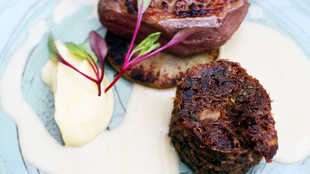 RUOKA. Keittiön tervehdyksenä saamme pikkukipon syvän- ja hyvänmakuista kukkakaalikeittoa. Sen pariksi Dittelsheim Riesling Kalkstein 2014, joka määritteli jo pitkälle talon linjan. Huikean mineraalisia ja varsin voimakkaita viinejä. Kolmantena kaikkiin maisteltuihin viineihin sopiva määre, raikkaus, joka puski sitruksen tukemana hienosti läpi tummasävytteisen kukkakaalikeiton.