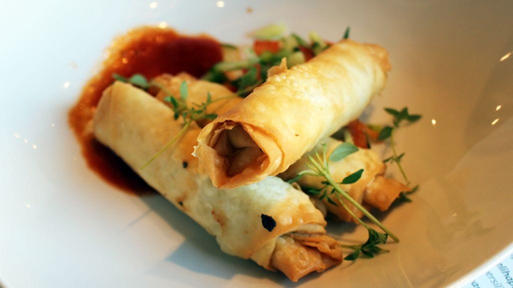 OTAMME ALKUUN jaettavaksi (9,00), filokääryleet feta-persiljatäytteellä sekä (7,00), tulisen salaatin tomaatista, sipulista, kurkusta ja paprikasta parin leipäpalan kera. Ruokajuomaksi turkkilaista olutta ja valkkaria. Ensimmäiset suupalat nostavat esiin tuoreuden. Valitettavan harvoin filotaikinarullat tulevat muuna kuin tukkupakasteena. Rapsakan lehtevä pinta ja itäisen välimerellinen täyte toimivat kesäillassa kuin oluttölkin sihahdus saunan päälle. Salsamainen salaatti on enemmänkin leipäpalalla dipattava kastike, mutta sellaisena herkullinen ja tulisuudeltaan mukava nälän nostattaja. Leipää olisi voinut olla vielä kolmas pala, koska pelkästään "dipin" nauttiminen oli turhan suoraviivaista.
