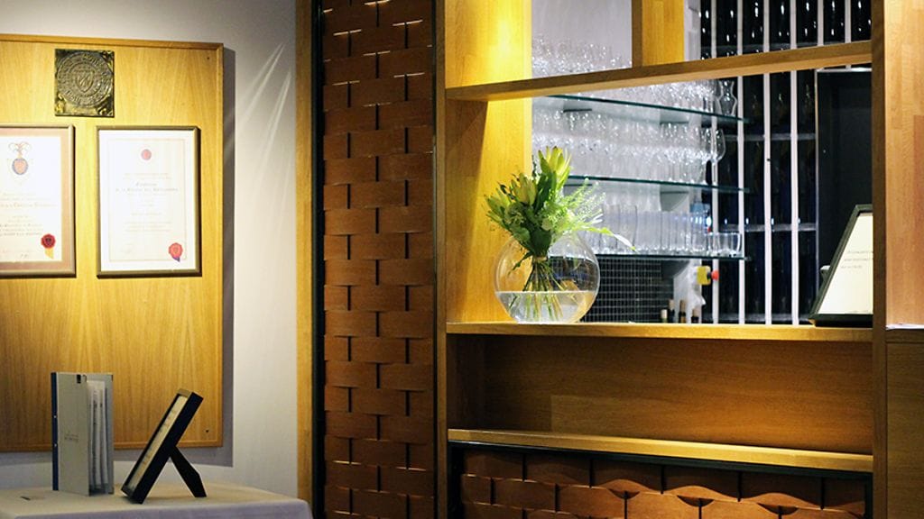 Alkuun ennestäänkin hyväksi havaitut, tyrnimarjoilla vauhditetut Neula-drinksut. Neljän ruokalajin menun (46 €) alkuruoaksi keittoa, jonka proteiinivaihtoehtoina tiikeriravut tai tofu. Vaimo valitsi omaansa ravut ja itselleni jäi tofu, koska maistamismäärä täytyy aina maksimoida. Mausteinen ja monisävytteinen liemi osoittautuu erinomaiseksi. Ehkäpä koko illallisen paras komponentti (ruoan suhteen). Kasvikset sointuvat kokonaisuuteen hyvin, mutta lusikalla syötäviksi ohuet soirot ovat hitusen turhan pitkiä. Tofu ilmenee rapua paremmaksi höysteeksi, vaikka yleensä sangen tylsä kimpale onkin. Hiukan rapsakka ja mausteinen pinta ja mehevä sisus toivat parhaat puolet esiin. Ruokajuomana 13 rypälelajikkeen Domaine Marcel Deiss Alsace Blanc 2014 pistää hyvin hanttiin hivenen voimakkaille mauille tuoden vastapariksi trooppisia hedelmiä ja karvautta.