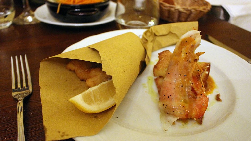 MENU JA JUOMAT. Otamme alkuun proseccot. Palvelu vaikuttaa alusta asti ystävälliseltä, mutta kokonaisuutena pintapuoliselta ja enemmän ja vähemmän hapuilevalta. Ovossa on kolme menua: lihallinen, merellinen ja pizzamenu. Merellinen kiehtoo aina eniten ja tuoreet makumuistot Amalfin rannikolta pyörivät yhä henkisillä makunystyröilläni. Menu (64,90 eur) käsittäisi listan mukaan simpukat saviruukussa, frittikokoelman meren elävistä, pastaa ja/tai risottoa kahdella tapaa sekä pääruoan lisukkeineen, jälkiruoan ja kahvin. Ruokajuomaksi ehdotetaan rapsakan mineraalista ja erittäin toimivaa Marchen maakunnan (40 eur/plo). Hitto, kun Alkosta ei liiemmin marchelaisia viinejä heru.