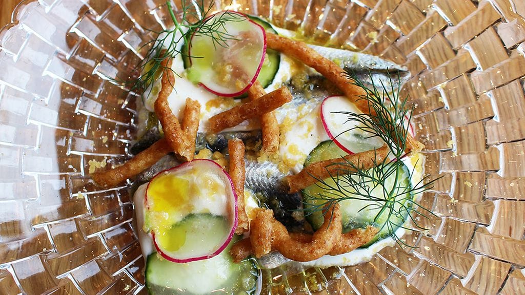 KALANSIEDÄTYSHANKKEENI pyrkii valitsemaan tasokkaissa paikoissa aina silakkaa, jos sitä on tarjolla. Perinteisesti kokattuna se ei edelleenkään liiemmin maistu, mutta taitavien kokkien käsistä olen saanut monta loistavaa makupalaa lautaselleni. Niin myös tällä kertaa. Mummonkurkkujen, kevyesti savustetun jogurtin, friteeratun mädin ja rapsakaksi paistetun taikinan kera tarjoiltu silakka-annos palautti mieleeni Berthan yllättävänkin vahvuuden makunystyröilläni, alkuruoat. Etikka oli vedetty sopivasti tappiin, silakka marinoitu juuri omaan makuun sopivaksi, frittimäti toi sävyä ja rapsakka taikina, no, rapsakkuutta. Kaikki balanssissa toisiaan nostaen. Illan paras annos. Puolikuiva kamppaili maukkaasti annoksen happojen kanssa. Vaimolle kaadettu näkemys kesäkeitosta nosti suupielet korviin ja alkuun podettu annoskateus hälveni. Niin tuttua, mutta silti niin erilaista. Rustiikkisuus päivittynyt pehmeän hienostuneeksi. in makuparimuistot eivät yltäneet kirjoitushetkeen asti.