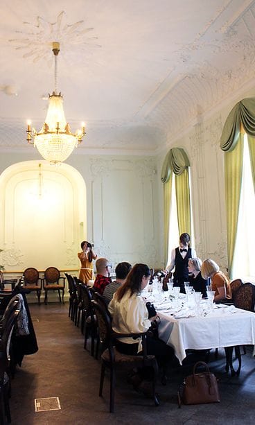 Tiistai-iltana ravintola on auki vain meille bloggareille. En tiedä, oliko Kristian yksin keittiössä tekemässä kaikkien safkoja. Jos oli, niin lisäpinna koriin. Tarjoilijana meille toimi monista rafloista tuttu, aina ystävällinen, mutta särmikäs . Kahden hengen miehitys isossa palatsissa ei antane kuvaa perustoiminnasta, joten keskitytään ruokaan.