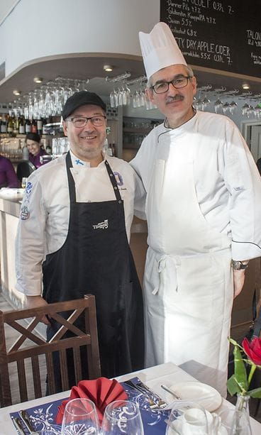 RANSKALAINEN MENU. Ranskalaista lounasta tarjoiltiin nyt kolmatta vuotta putkeen. Oppilaat ovat saaneet opettajakseen vuosia Michelin-ravintolassa työskennelleen ja useita alan arvostettuja kilpailuja voittaneen keittiömestari Sylvain Tauveronin (kuvassa oikealla).