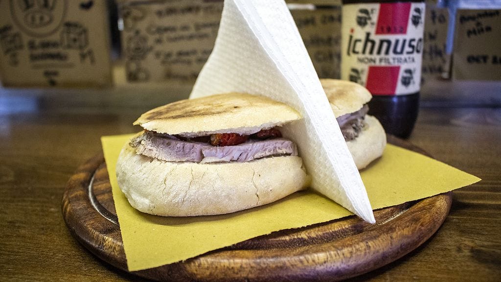ANGRYPIG on melko huomaamaton paikka vilkkaan kadun sivukadulla. Puolenpäivän aikoihin syömässä oli pariskunnan lisäksi pieni japanilaisseurue. Seinät on tapetoitu tussilla kirjoitetuilla, ylistävillä asiakaspalautteilla. Mestassa työskenteli pari vanhempaa herrasmiestä, jotka olivat kuin repäisty Sopranosista. Erittäin mukavia ja rentoja tyyppejä. Halusin maistaa vain porchettaa, mutta toisaalta myös paninia. Siispä porchettalla ja uunitomaatilla täytetty panini sekä käsityöläisolut. Hinnaksi 9,50. Paninissa ei ole varsinaista kostuketta, mutta kaikki toimii täydellisesti. Ei ollut varsinaisesti nälkä, mutta leipä upposi sisuksiin helposti. Porchetta näyttää kuivalta kuin joulukinkku, mutta sen mehevyys on lopulta samaa tasoa kuin kinkku parhaimmillaan. Rapsakaksi paahdettu leipä tuntuu aluksi kuivalta, mutta kun koko haukku on suussa, maku on upea. Näin kuivan oloisen ja yksinkertaisen ei pitäisi maistua näin hyvältä, mutta maistuu. Iso suositus. Porchettaa voi maistaa myös juustojen kanssa pienempänä hiukopalana.