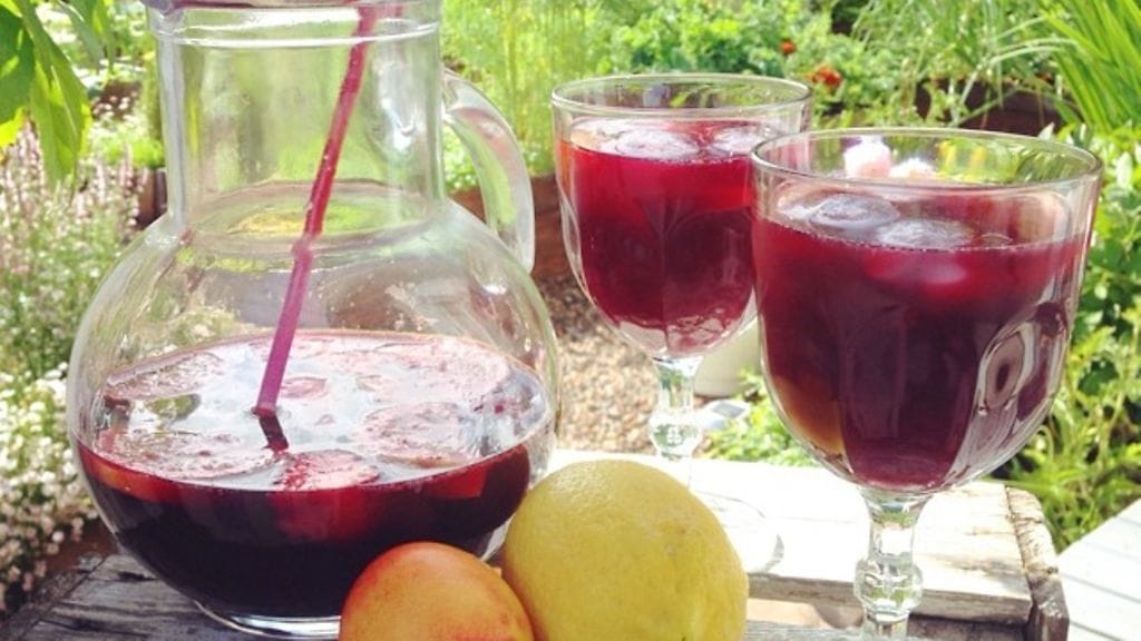 Sangria kuuluu niihin juomiin, joita maistaessa tulee aina miettineeksi, miksi ihmeessä sitä ei juo useammin. Kesäloman viimeinen päivä, joka ilmeni vieläpä helteiseksi, suorastaan huusi sangrian kaltaista kostuketta puutarhan rauhassa nauttimiseen.