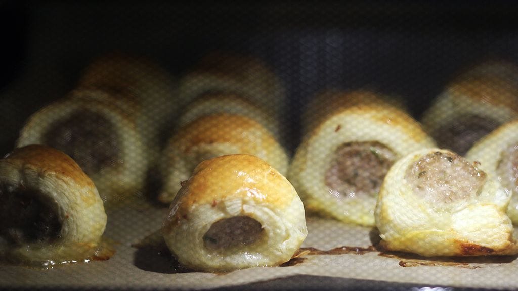 Ruoka on hyvin lähellä lihapiirakkaa, mutta siihen ei tule riisiä. Voitaikinan sisään rullattavaan täytteeseen voit laittaa melkeinpä mitä vain. Voit käyttää myös kaupan raakamakkaraa, kunhan puristat täytteen ensin kuoresta ulos. Lopputulos on lähellä suomalaista (järkyttävää) nakkipiiloa/nakkikätköä/nakkipiirakkaa, joka palauttaa monelle lapsuusmuistot mieleen.