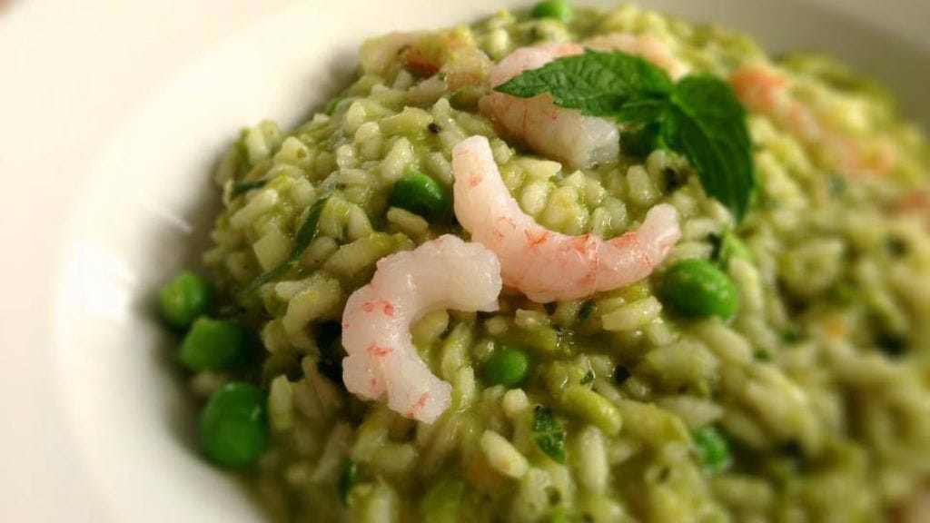 Yrttinen herne-katkarapurisotto