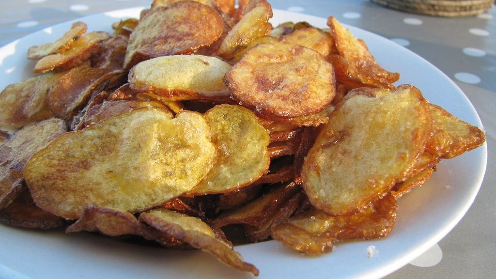 HUOM! Mikäli osa lastuista jäi lötköiksi, rapeuta niitä 125-asteisessa uunissa sen verran, että niistä tulee rapsakoita.