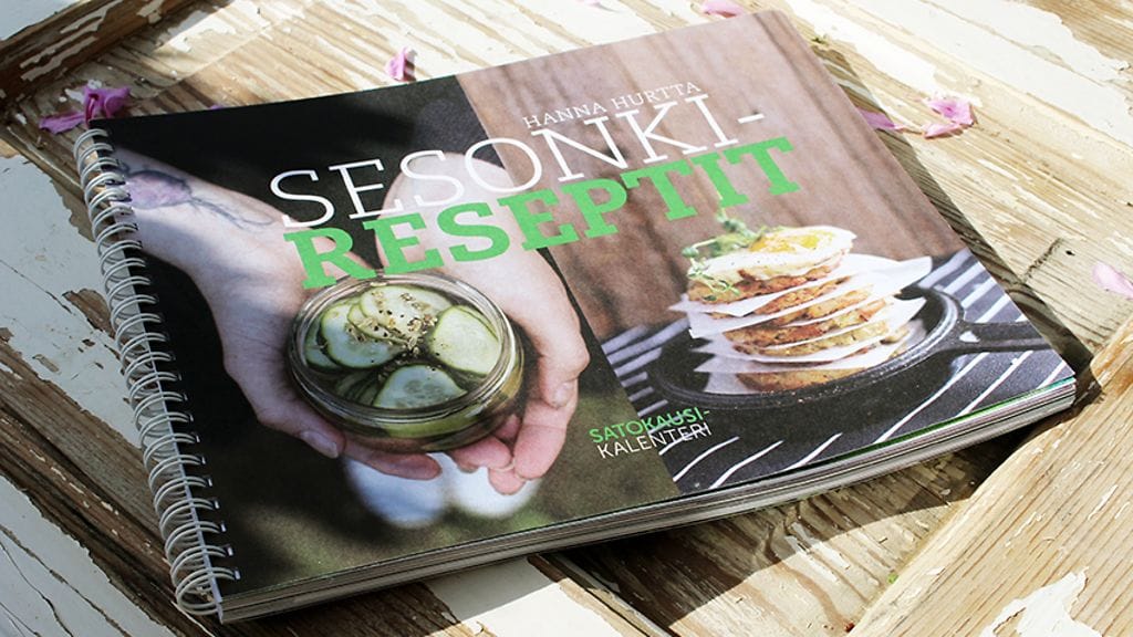 Jatketaan maissilla. Sain keväällä arvostelukappaleeksi Satokausikalenterin julkaiseman ja Hannan soppa -blogia pitävän Hanna Hurtan kirjoittaman Sesonkireseptit-kirjasen. Kierresidottuna se päätyi keittokirjojen päälle piiloon ja löysin sen vasta uudelleen. Mutta mikä parasta, tämä kirja on aina ajankohtainen. Reseptit on jaoteltu kuukausittain, suomalaisia ja ulkomaisia satokausia huomioiden. Elokuulle on tarjolla mm. härkäpapua, selleriä sekä maissia.