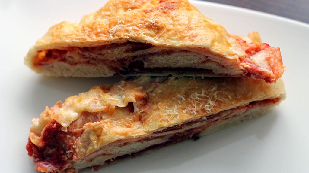 Stromboli toimii loistavasti illanistujaisissa, koska rullan voi leikata mukaviksi, käsin syötäviksi viipaleiksi. Hyvää niin kuumana kuin haaleanakin. Muista myös piknikkievääksi!