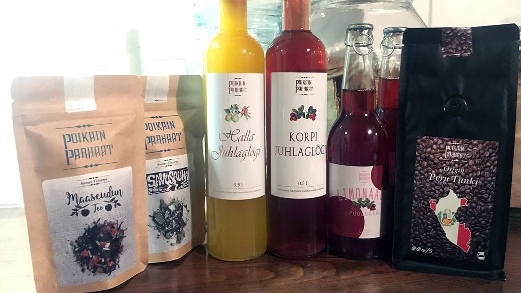 POIKAIN PARHAAT. Maanantaina kävin Tampereen Kaukajärven kupeessa Poikain Parhaita moikkaamassa (yläkuva). Olen juonut heidän glögiään jo parina talvena ja todennut sen suosikikseni alati monipuolistuvilla glögimarkkinoilla. Kesällä ostoskoriin sujahti heidän jäätee, joka toisin kuin kilpailijansa, maistuu teeltä. Ihan siksi, koska siinä on teetä. Tähän kiteytyykin Nikolas Jokisalon ja Pertti Hakalan pari vuotta sitten alkuunpistämän yrityksen liikeidea. Tehdään tuotteita aidoista raaka-aineista ilman kikkailuja luottamalla raaka-aineiden aitoihin makuihin. Kun maistat heidän puolukkalimonaadiaan, se maistuu vahvasti puolukalta. Omenalimppari puolestaan omenalta eikä esanssilta.