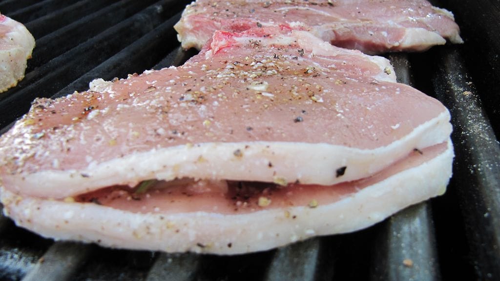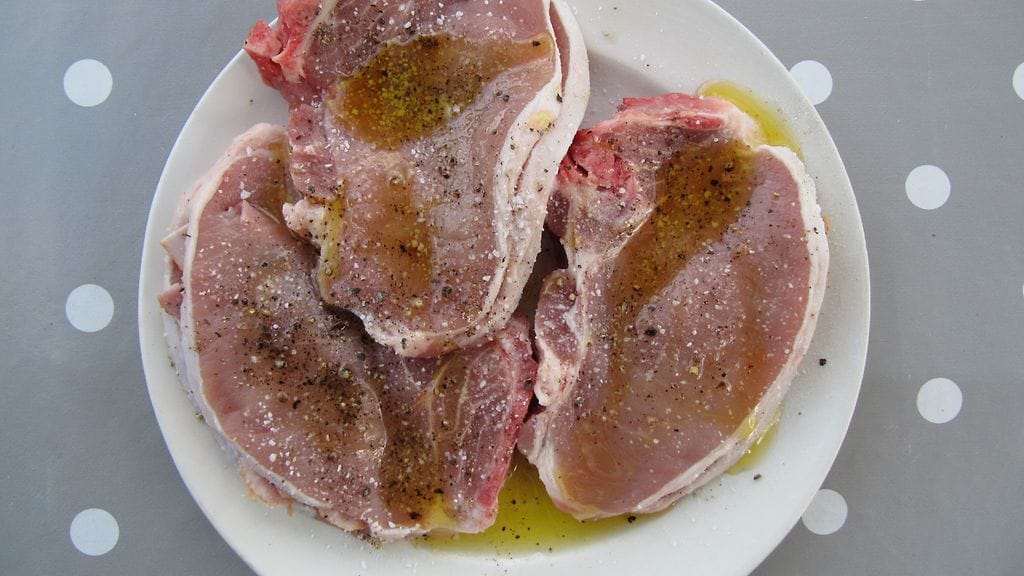 Leikkaa terävällä veitsellä varovasti taskut kyljyksiin, kts kuva. Suolaa ja pippuroi kyljykset sisältä ja päältä. Laita kunkin kyljyksen sisään 2-3 salvianlehteä, puolikas pekoniviipale (voi laittaa kokonaisenkin, jos mahtuu), teelusikallinen aurinkokuivatun tomaatin palasia ja nokare voita. Paina kyljystä varovasti kasaan, jotta saat tiiviin paketin. Tunge mahdollisesti ulospyrkivät ainekset takaisin sisään. Voitele kyljykset oliiviöljyllä. Lämmitä grilli ja grillaa kyljykset haluamasi kypsyyteen. Voin ja pekonin avulla ne eivät niin helposti kuivu, mutta ole silti tarkkana, että lopputulos on mehevä.
