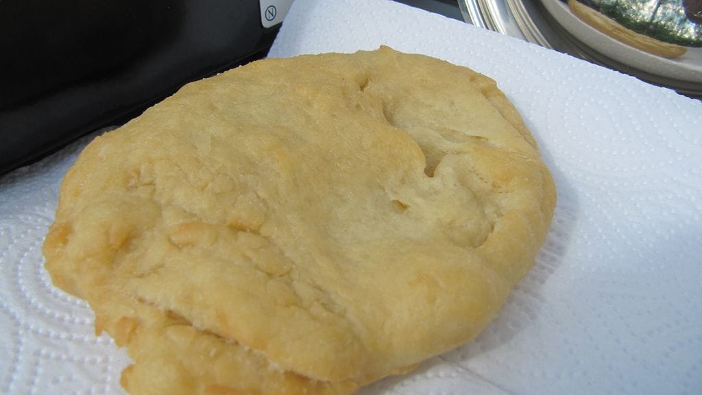 Muovaa pizzataikinasta n. cd-levyn kokoisia ohuehkoja pohjia. Kaada öljyä kattilaan n. 5 cm syvyydeltä. Kuumenna öljy varovasti. Testaa oikea lämpötila. Se on valmista, kun pieni yrtinpala alkaa sihistä öljyyn pudotessaan. Paista pizzapohjia puolisen minuuttia kummaltakin puolelta, kunnes ne saavat vähän väriä. Nosta valumaan keittiöpaperin päälle.