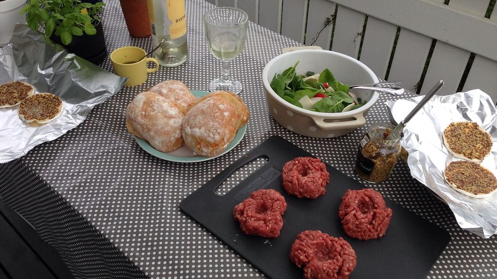 Kuten pihvipihvikin, on jauhettu burgeripihvi parasta, kun sisus on rosee tai maun ja lihan laadun salliessa vieläkin raaempi. Melko raa’an lihan ystävänä minua ärsyttää ravintolassa, kun sisus on herkullisen punainen, mutta viileä. Kotioloissa, Eviraa paossa, liha kannattaa antaa lämmetä huoneenlämmössä vähintään puoli tuntia, mielummin tunti.