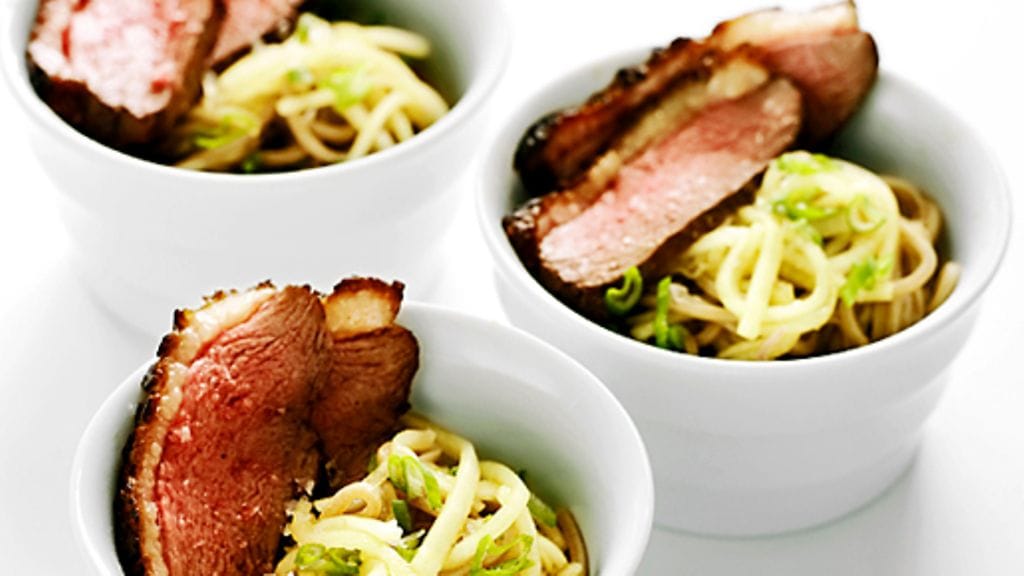 1. Puhdista ankanrinnoista jänteet ja liika rasva. Leikkaa nahkaan ruudukko terävällä veitsellä ja laita lihat kylmään paistinpannuun nahka alaspäin. Kuumenna miedolla lämmöllä ja paista nahkapuolta 10-15 minuuttia. Kaada paistamisen aikana sulava rasva pannulta sitä mukaa kun sitä kertyy. Kuumenna lämpöä kun nahka on kauniin värinen, suolaa lihapuoli. Käännä ankanrintoja ja paista lihapuolta 30 sekuntia. Ota pannusta ja anna levätä.