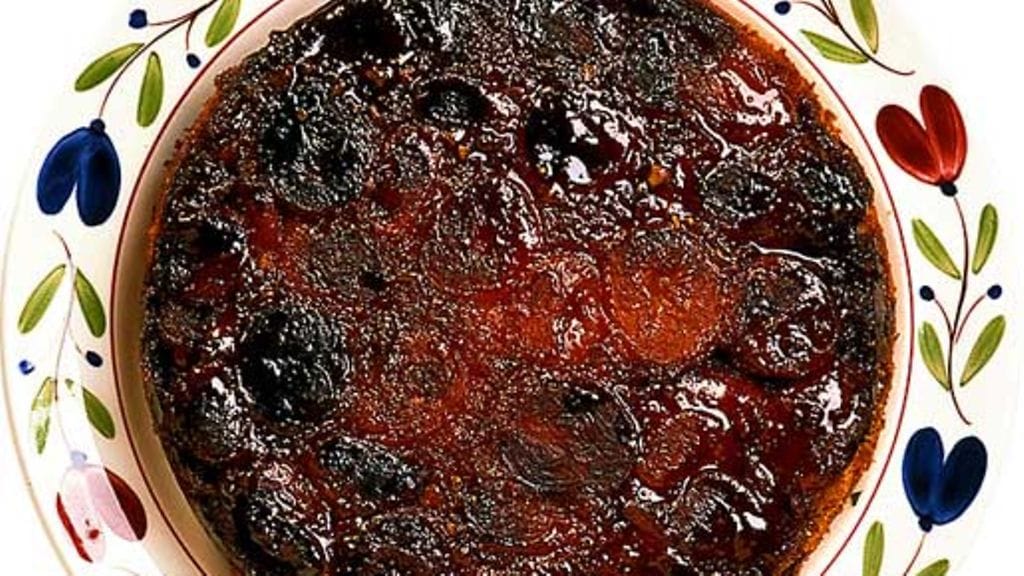 3. Vuoraa vuoan sisäpinta aprikooseilla. Kaada taikina vuokaan ja paista kakkua uunin alaosassa 50-60 minuuttia. Kokeile tikulla. Kakku on valmis, kun tikku on täysin kuiva.