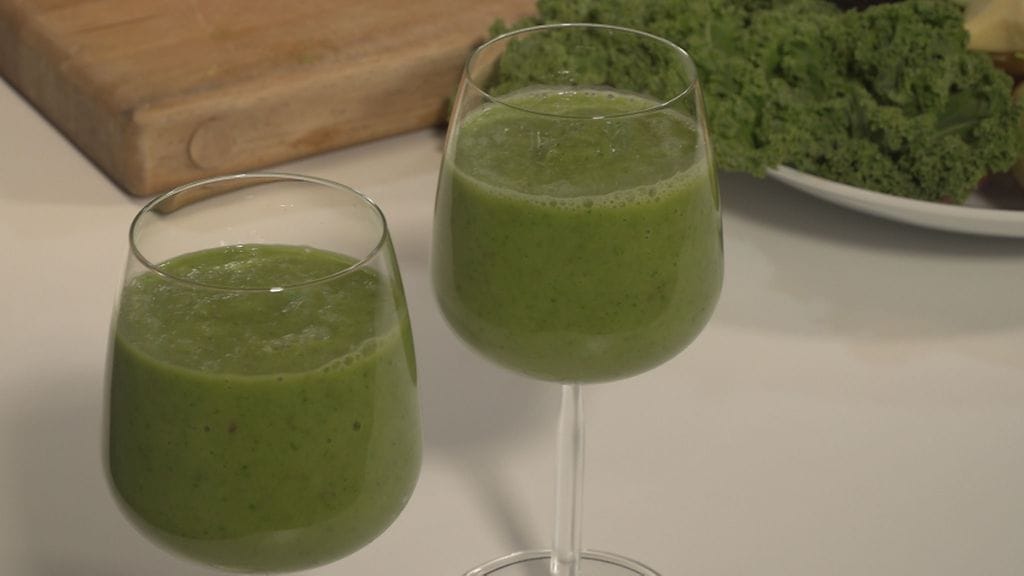 Huomenta Suomen Duunikunto-ohjelmasarjan reseptillä valmistuu terveellinen smoothie, joka on loistava välipala tai laihduttajalle sopiva lounasannos. Smoothie valmistuu helposti ja nopeasti.