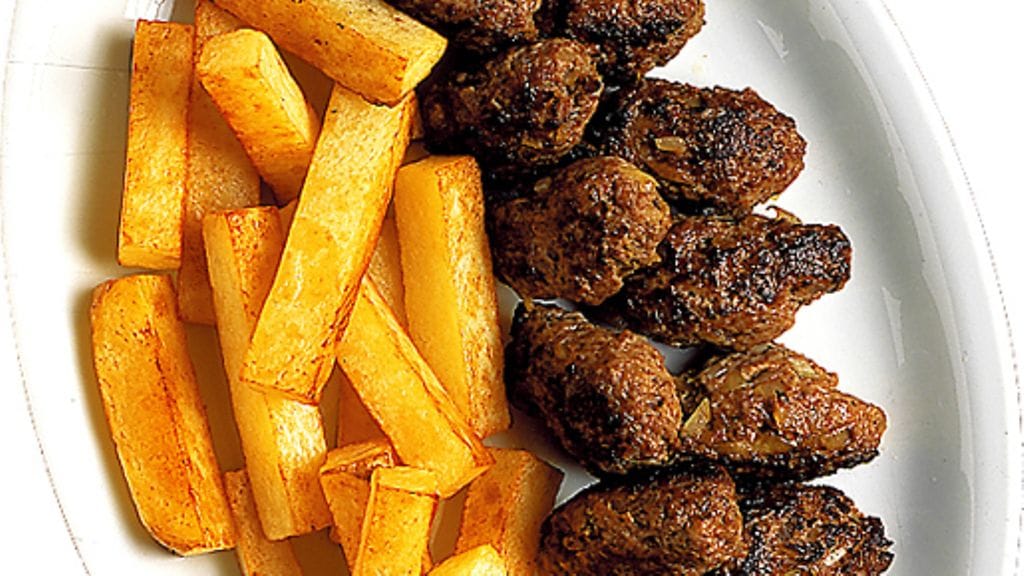 1. Kuori ja hienonna sipuli. Sekoita lampaan ja naudanjauheliha, sipuli ja vesi tasaiseksi taikinaksi. Mausta suolalla, pippurilla ja juustokuminalla.