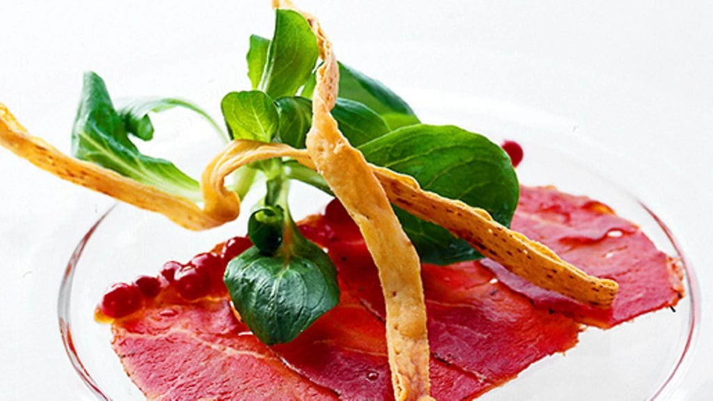 1. Puhdista lihasta mahdolliset kalvot ja suonet ja pane se pakastimeen vähintään vuorokaudeksi. Anna sen sitten sulaa hieman, jolloin siitä pystyy leikkaamaan paperinohuita viipaleita.