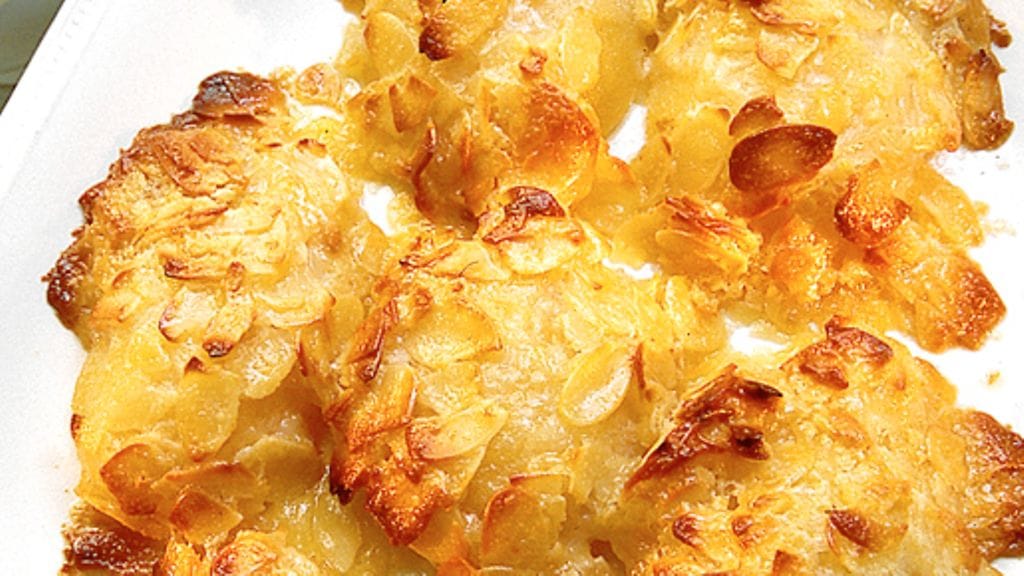 3. Kaada massa päärynöiden päälle ja paista 225-asteisessa uunissa n. 15 minuuttia, kunnes mantelipeitto on kauniin värinen.