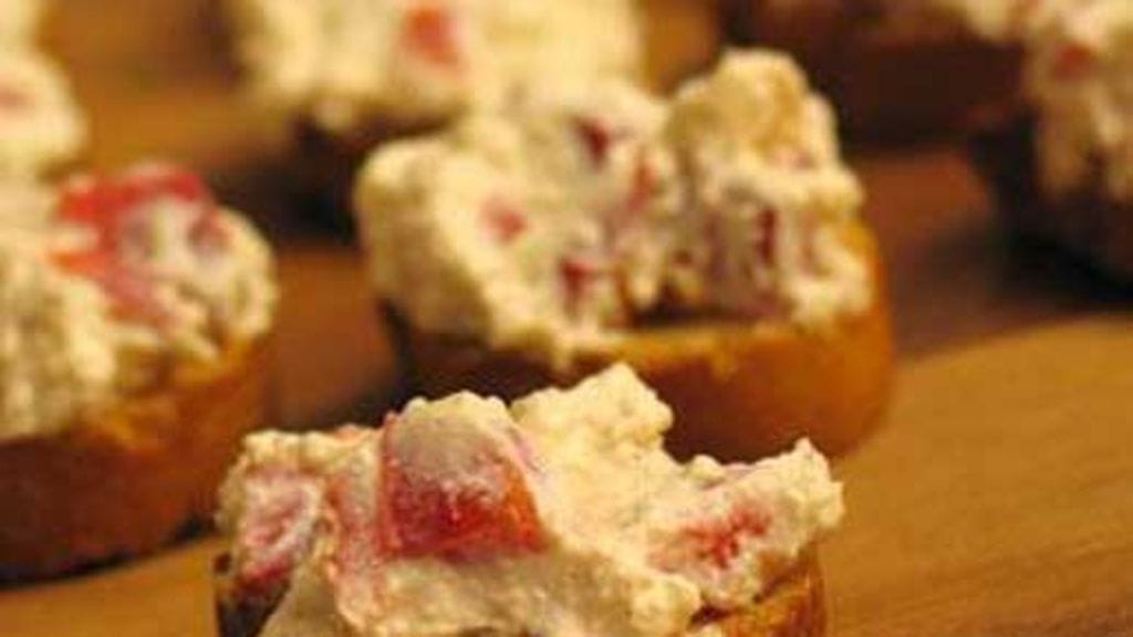 Murskaa fetajuusto kulhoon ja lisää sekaan valutettu jogurtti, ranskankerma, pieniksi kuutoiksi pilkottu paprika, murskattu valkosipuli ja mausteet. Tarjoa tahna leipien päällä.