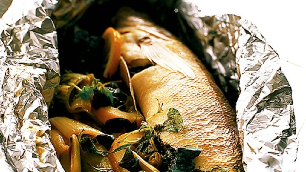 2. Sulje foliopaketti tiiviisti ja nosta grillille, kala kypsyy noin puolessa tunnissa. Yhtä kauan kestää kypsyttäminen 200-asteisessa uunissa. Pienempi kala, kuten taimen, kypsyy 15-20 minuutissa.