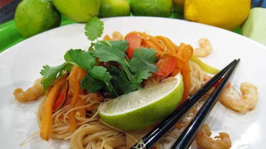 Kiehauta ja lisää lopuksi mukaan sulaneet katkaravut ja riisinuudelit.